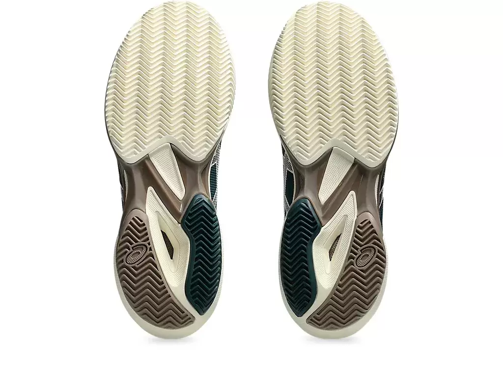 Enquanto isso, o novo cabedal em malha e filme projetados e a sola gerada algoritmicamente são leves e oferecem excelente aderência e flexibilidade, o que permite aumentar sua velocidade na quadra de saibro.