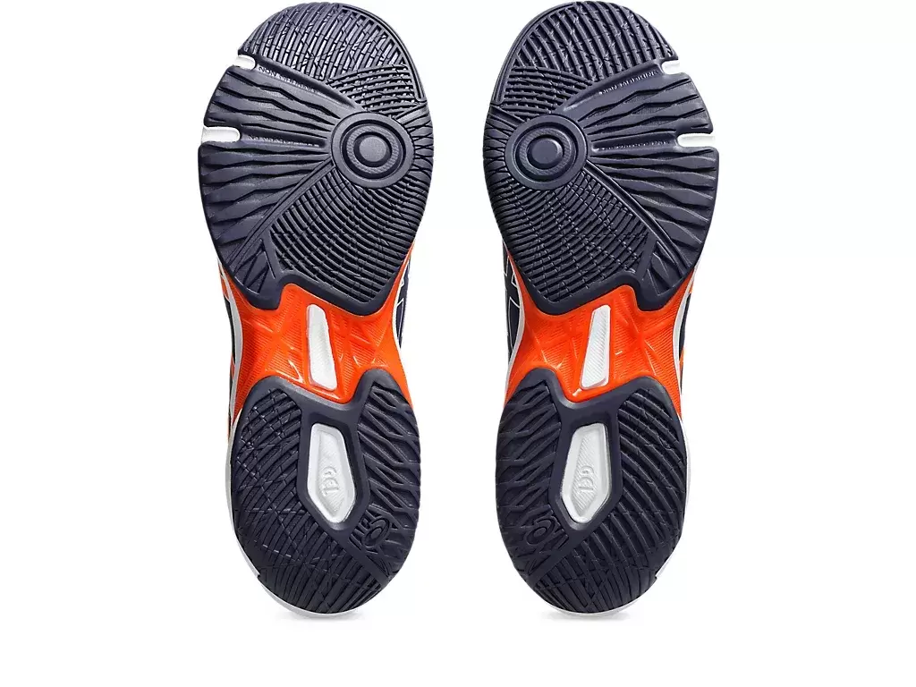Enquanto isso, as ranhuras de flexão na sola proporcionam maior flexibilidade para ajudar você a se movimentar com mais liberdade na quadra.