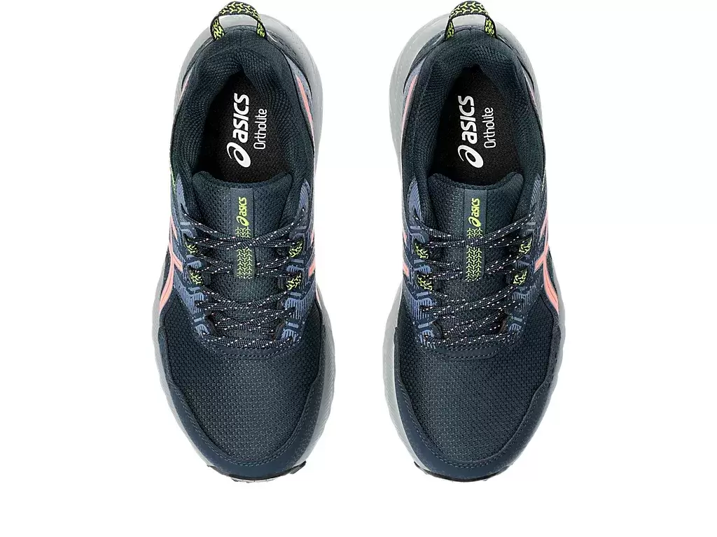 O tênis GEL-VENTURE® 9 foi modificado para proporcionar melhor amortecimento. Seus materiais foram estrategicamente projetados para a transição entre ambientes externos e ruas da cidade.