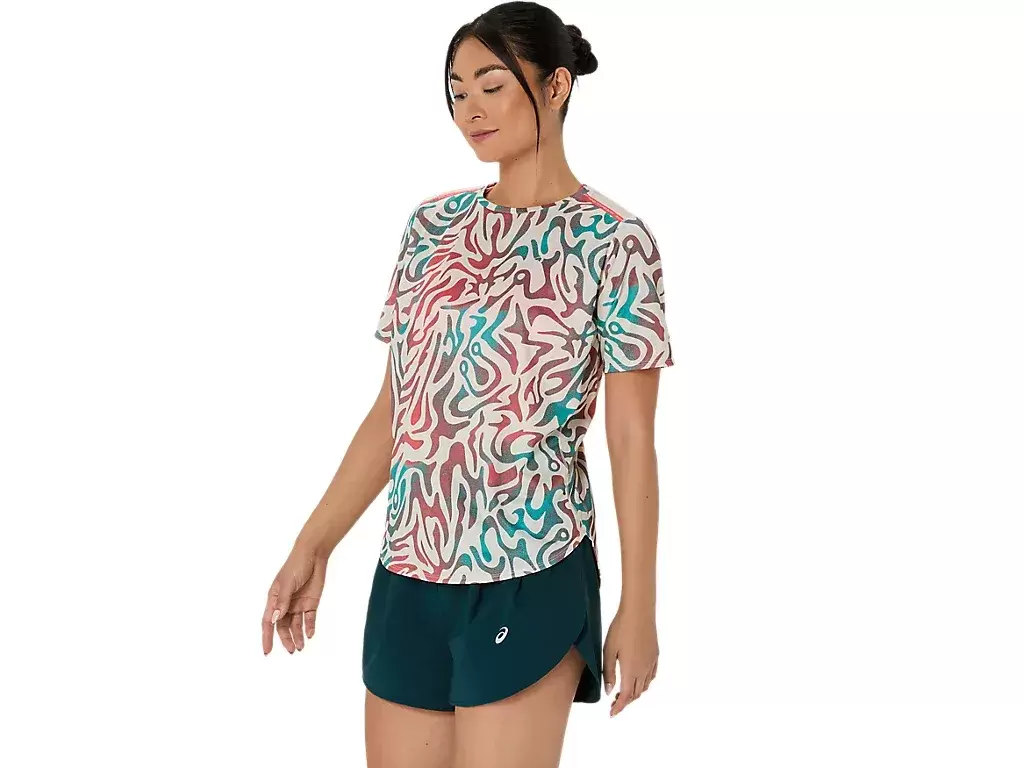 Nossa blusa de corrida preferida para diversas estações, a ROAD ALL OVER PRINT SHORT SLEEVE TOP, foi projetada pensando em respirabilidade e conforto.