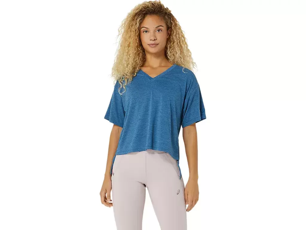 A blusa de manga curta NAGINO™ FLEX HEATHER é funcional para movimentos flexíveis graças ao seu design de baixo impacto.
