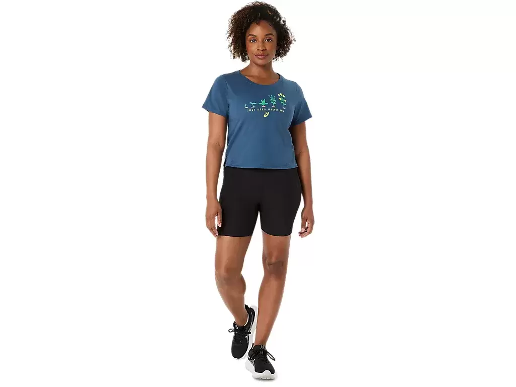 Esta camiseta de manga curta em malha confortável apresenta uma série de ilustrações de plantas em diferentes estágios do seu ciclo de crescimento na parte frontal. Ela também traz a frase “CONTINUE CRESCENDO” escrita abaixo.
