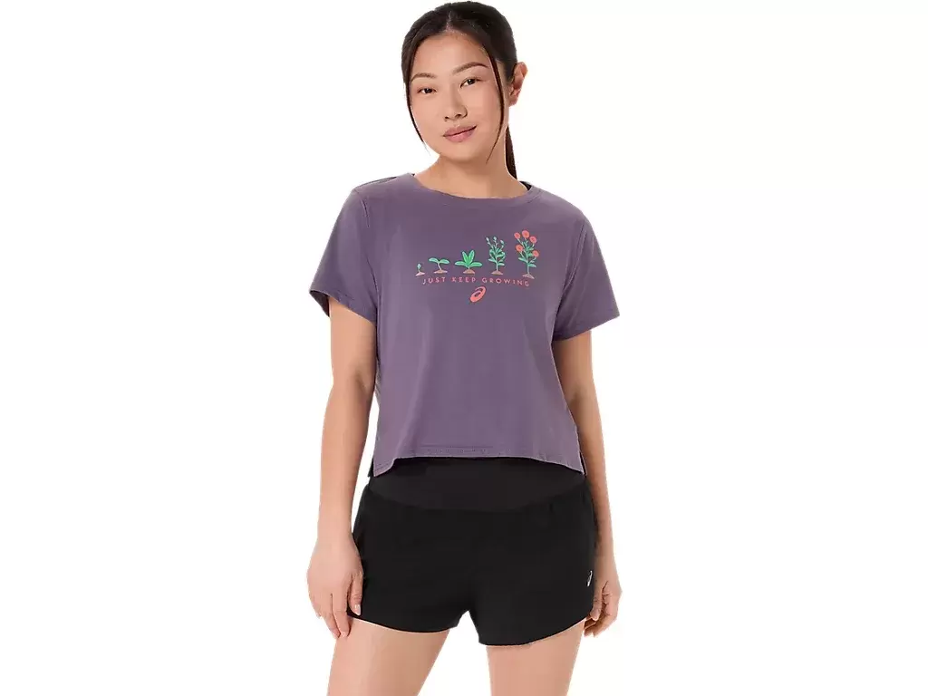 Esta camiseta de manga curta em malha confortável apresenta uma série de ilustrações de plantas em diferentes estágios do seu ciclo de crescimento na parte frontal. Ela também traz a frase “CONTINUE CRESCENDO” escrita abaixo.