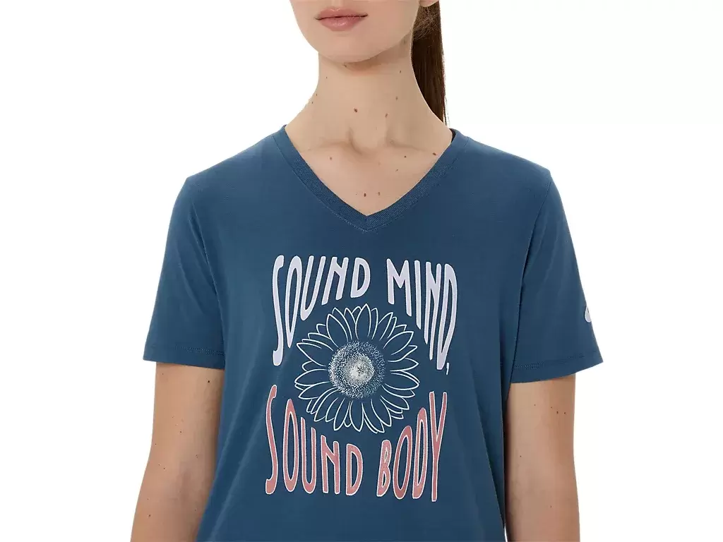 Esta blusa de manga curta com decote em V foi projetada para proporcionar uma sensação suave e agradável ao toque. Possui um tecido confortável que visa melhorar a liberdade de movimento.