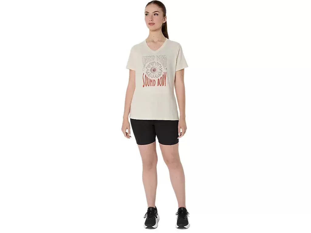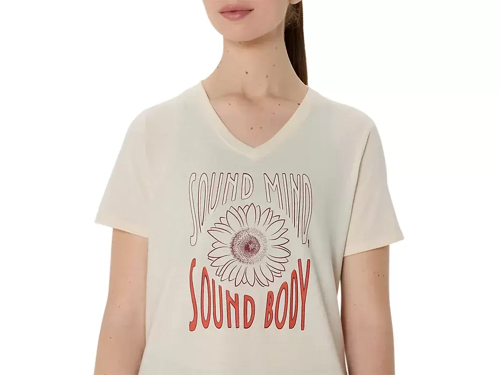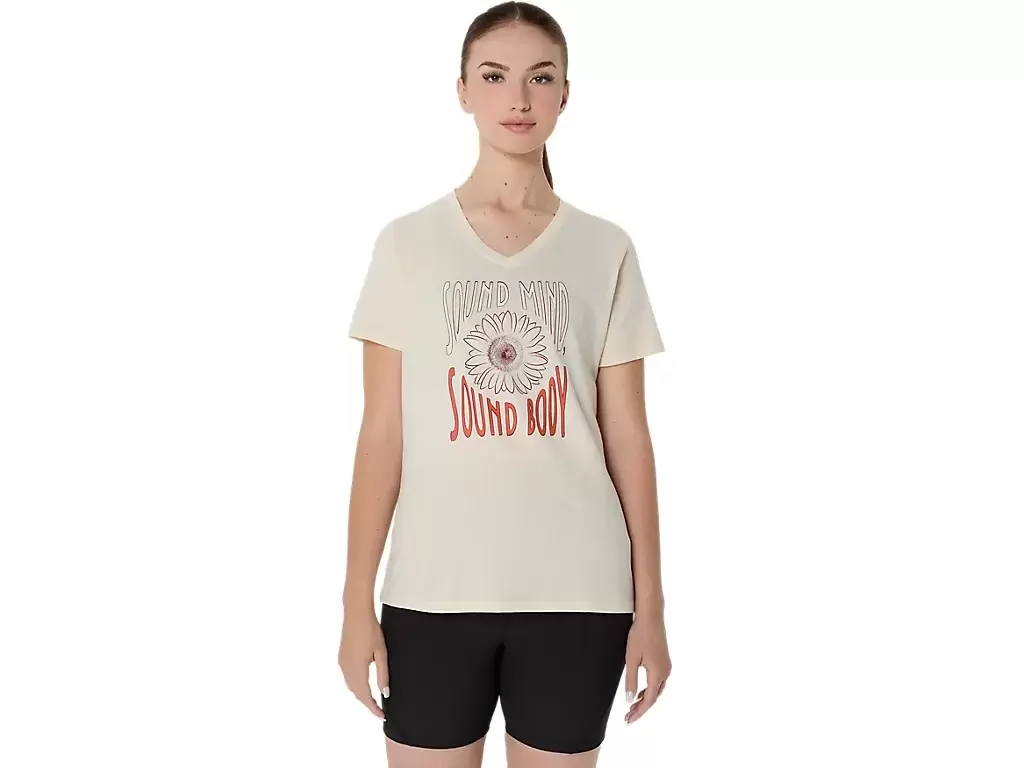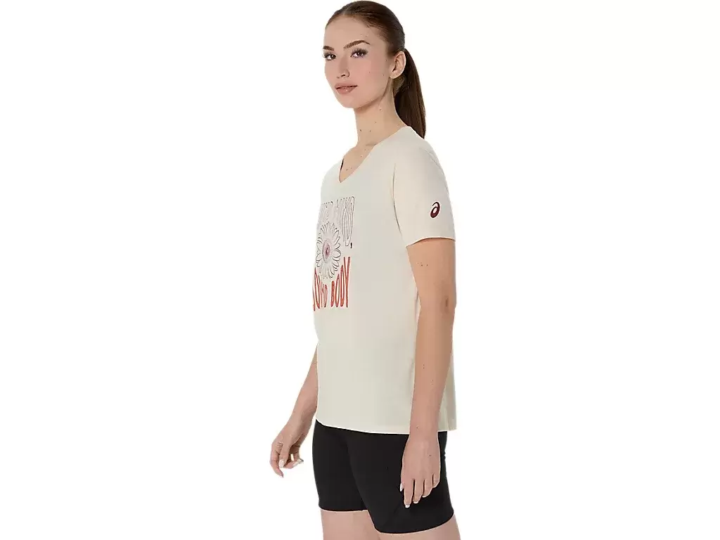 Esta blusa de manga curta com decote em V foi projetada para proporcionar uma sensação suave e agradável ao toque. Possui um tecido confortável que visa melhorar a liberdade de movimento.