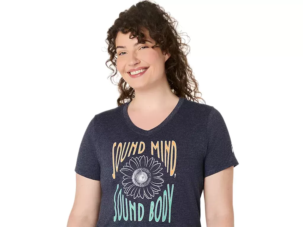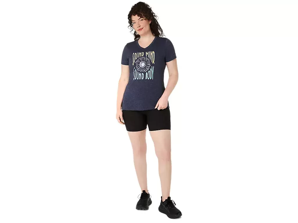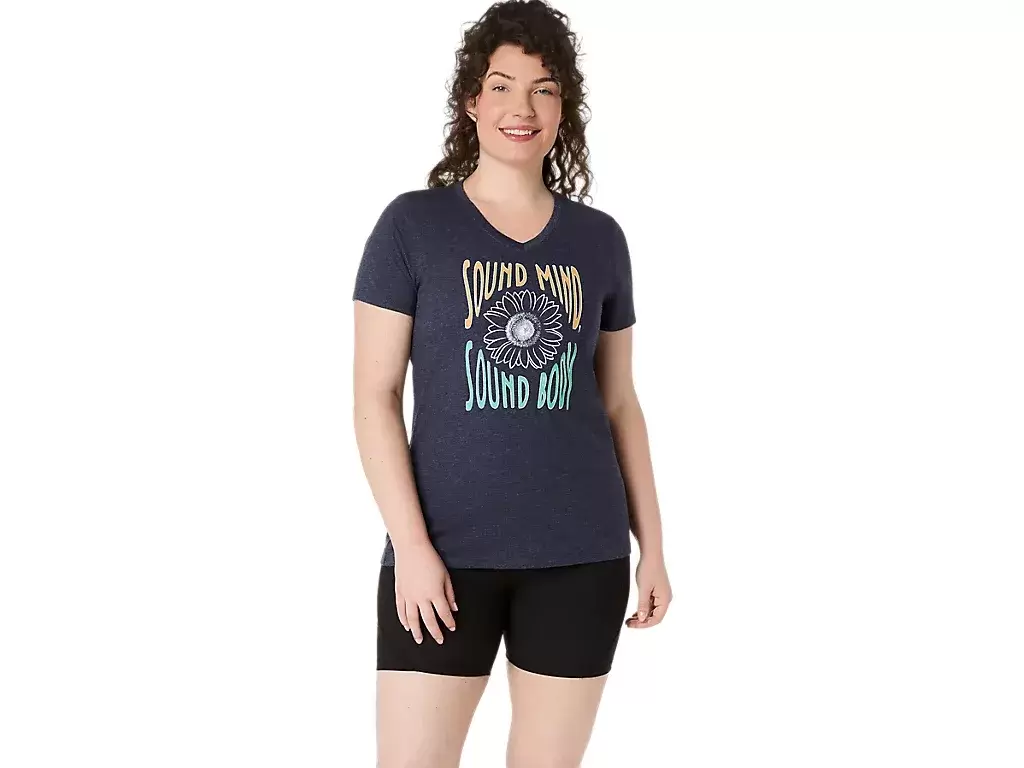 Esta blusa de manga curta com decote em V foi projetada para proporcionar uma sensação suave e agradável ao toque. Possui um tecido confortável que visa melhorar a liberdade de movimento.