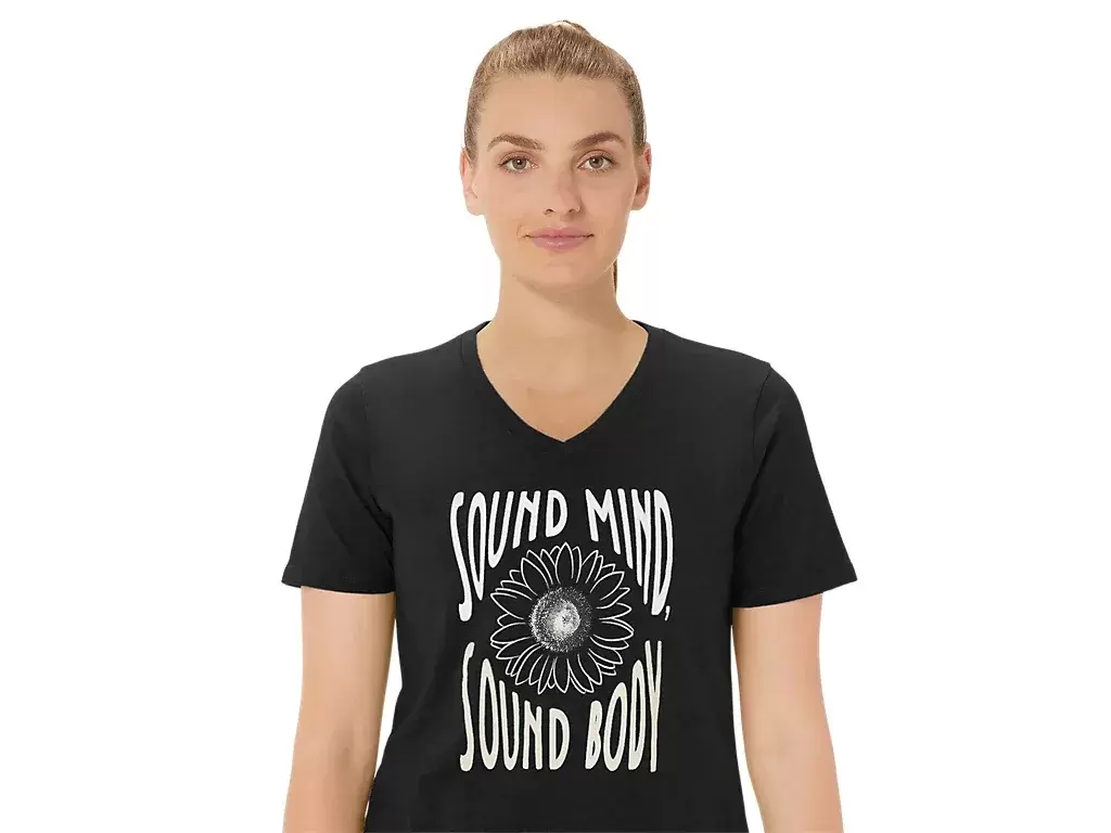 Esta blusa de manga curta com decote em V foi projetada para proporcionar uma sensação suave e agradável ao toque. Possui um tecido confortável que visa melhorar a liberdade de movimento.