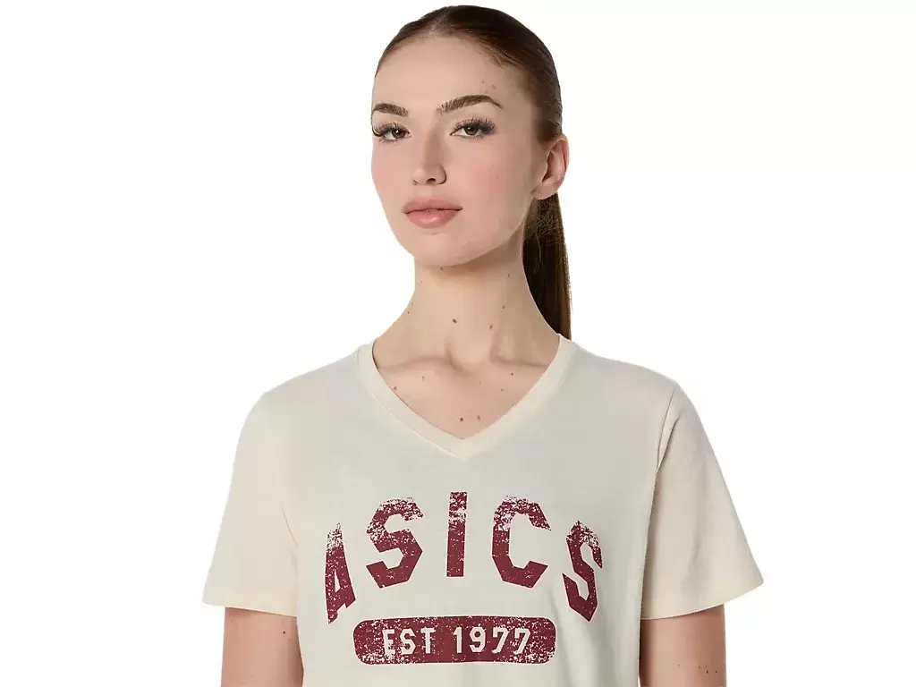 Confeccionada em tecido de malha, esta blusa é funcional para uma variedade de rotinas de treino. Além disso, esta camiseta também incorpora uma estampa retrô da ASICS de 1977 na parte frontal.