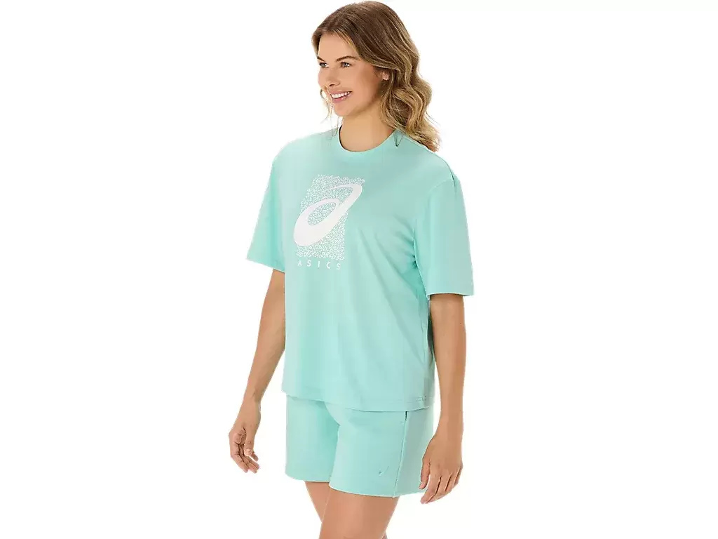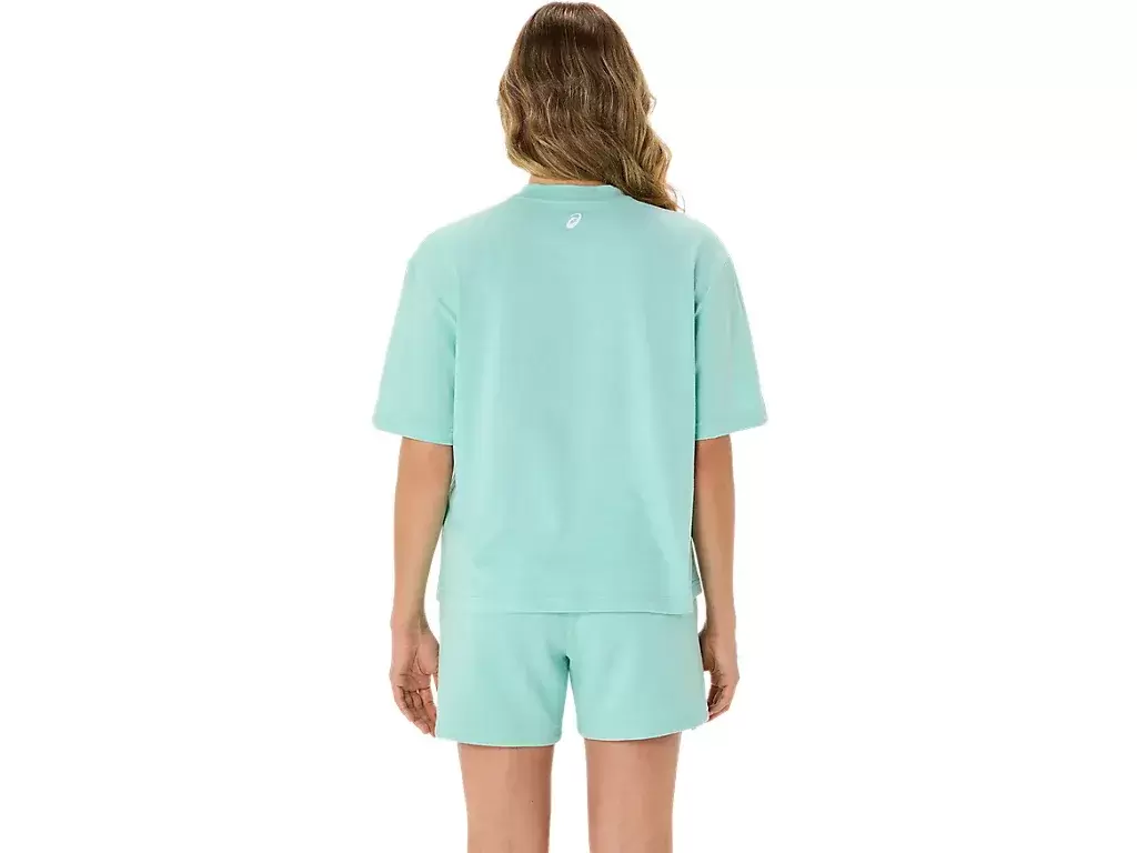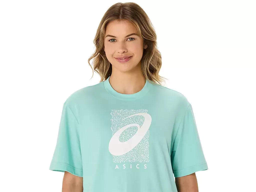 A blusa também conta com uma estampa sazonal ASICS® Spiral, comprimento cropped, modelagem relaxada e fendas laterais para maior liberdade de movimento.