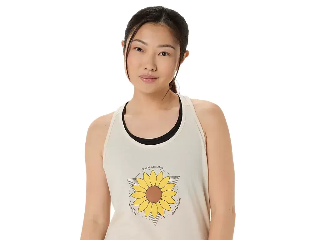 Esta camiseta de manga curta em malha confortável homenageia a influência icônica do girassol ao longo da história da nossa marca. Um girassol é estampado no centro e complementado por diversos slogans motivacionais ao redor da borda.
