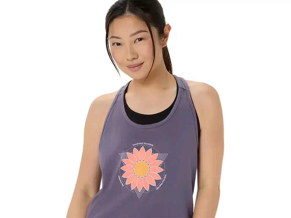 Esta camiseta de manga curta em malha confortável homenageia a influência icônica do girassol ao longo da história da nossa marca. Um girassol é estampado no centro e complementado por diversos slogans motivacionais ao redor da borda.