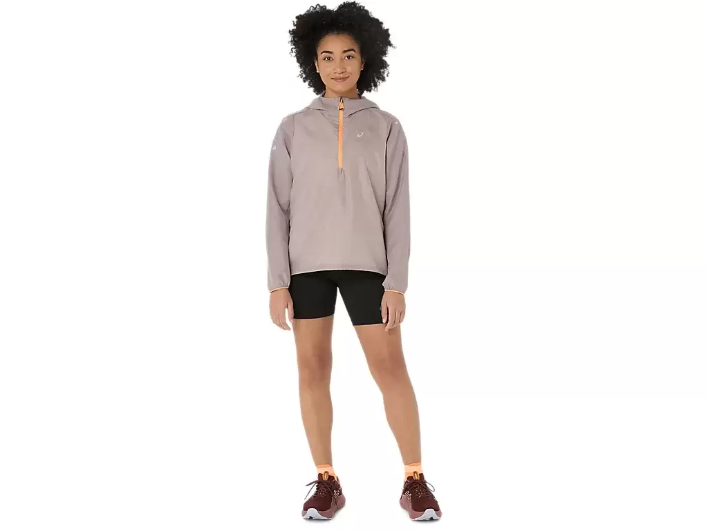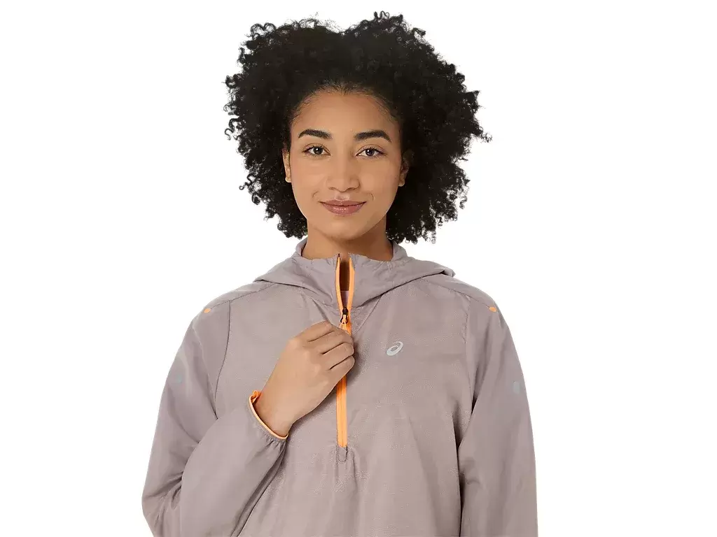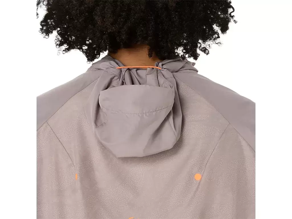 A jaqueta é repleta de recursos. O bolso traseiro pode ser usado para guardar itens essenciais de corrida e para compactar a jaqueta, e o zíper frontal até a metade e o painel traseiro expansível permitem que ela seja usada facilmente sobre um colete de corrida ou trilha. Além disso, o capuz elástico e o cordão de ajuste permitem um encaixe personalizado, enquanto a construção sem costuras nos ombros proporciona liberdade de movimento para que você possa correr em terrenos off-road com conforto e confiança. Pelo menos 50% do material principal da peça é feito com conteúdo reciclado para reduzir o desperdício e as emissões de carbono. Tecido ripstop