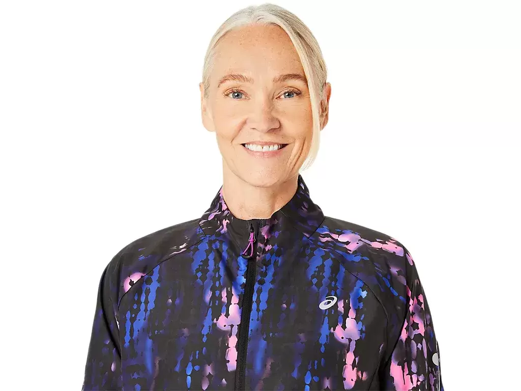 Supere seus limites na corrida com a jaqueta dobrável ROAD LITE-SHOW™ com estampa por toda a peça.