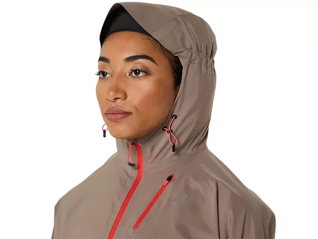 Além disso, conta com gola alta e orifícios para os polegares para proteção contra os elementos, e um ajuste no capuz na parte de trás para um caimento personalizado.