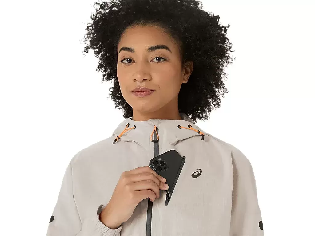 Além disso, conta com gola alta e orifícios para os polegares para proteção contra os elementos, e um ajuste no capuz na parte de trás para um caimento personalizado.