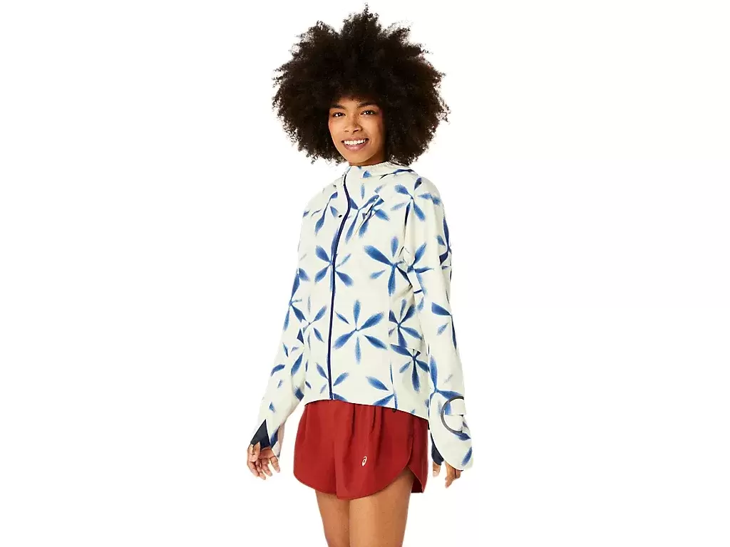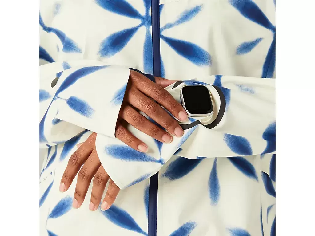 A jaqueta impermeável METARUN® SHIBORI é uma das mais avançadas da coleção de corrida ASICS®. Ela é funcional para correr em condições climáticas adversas e pode ser facilmente removida e guardada no bolso do peito durante a corrida.