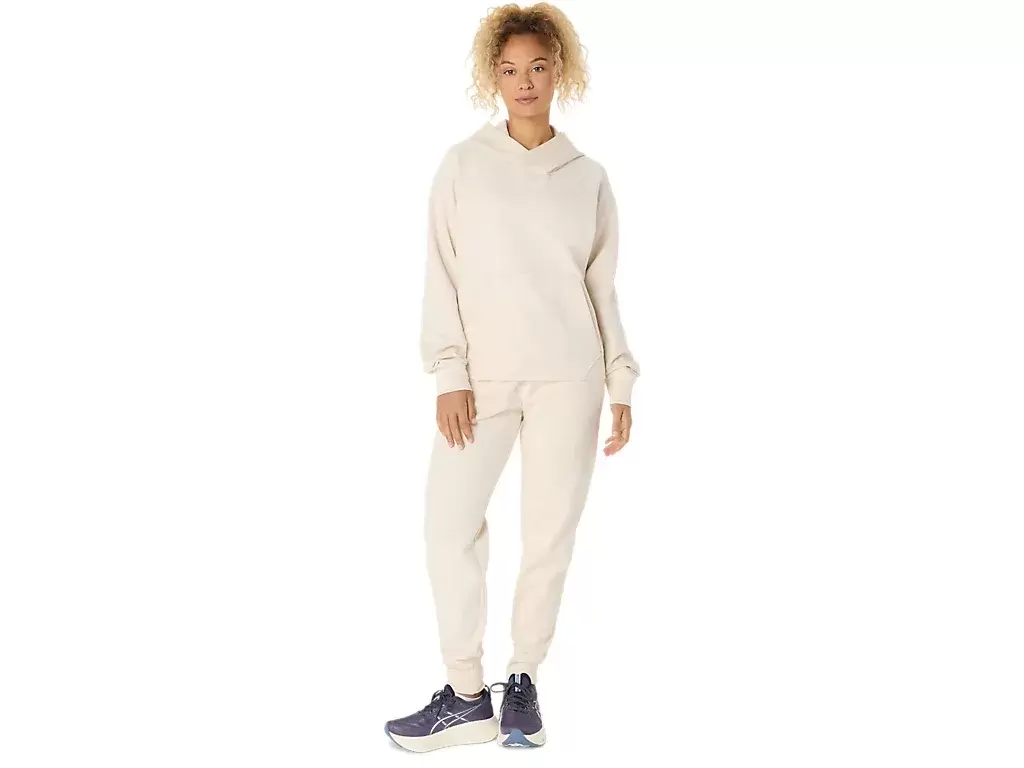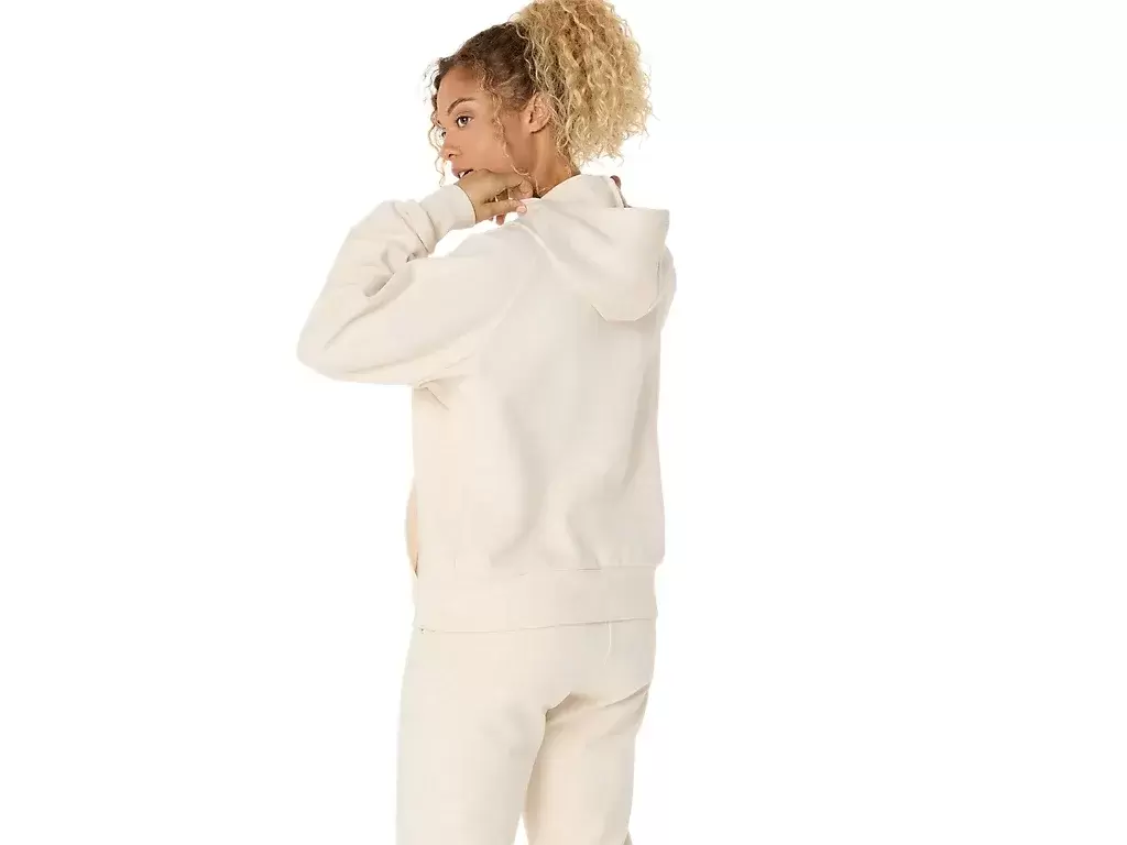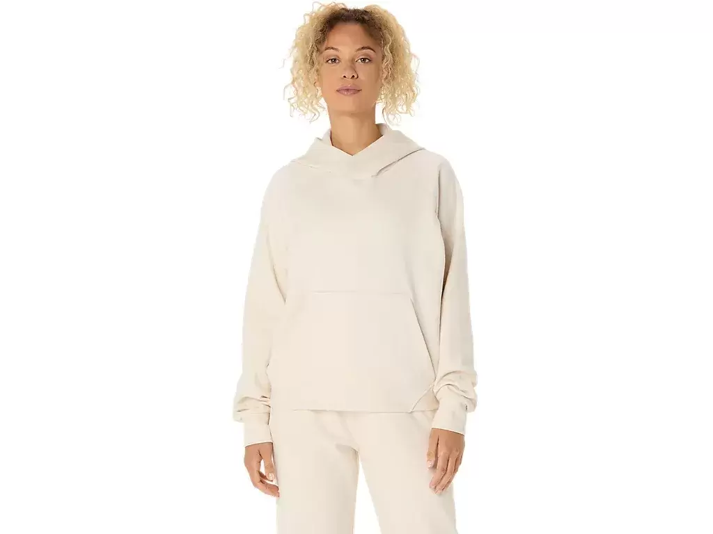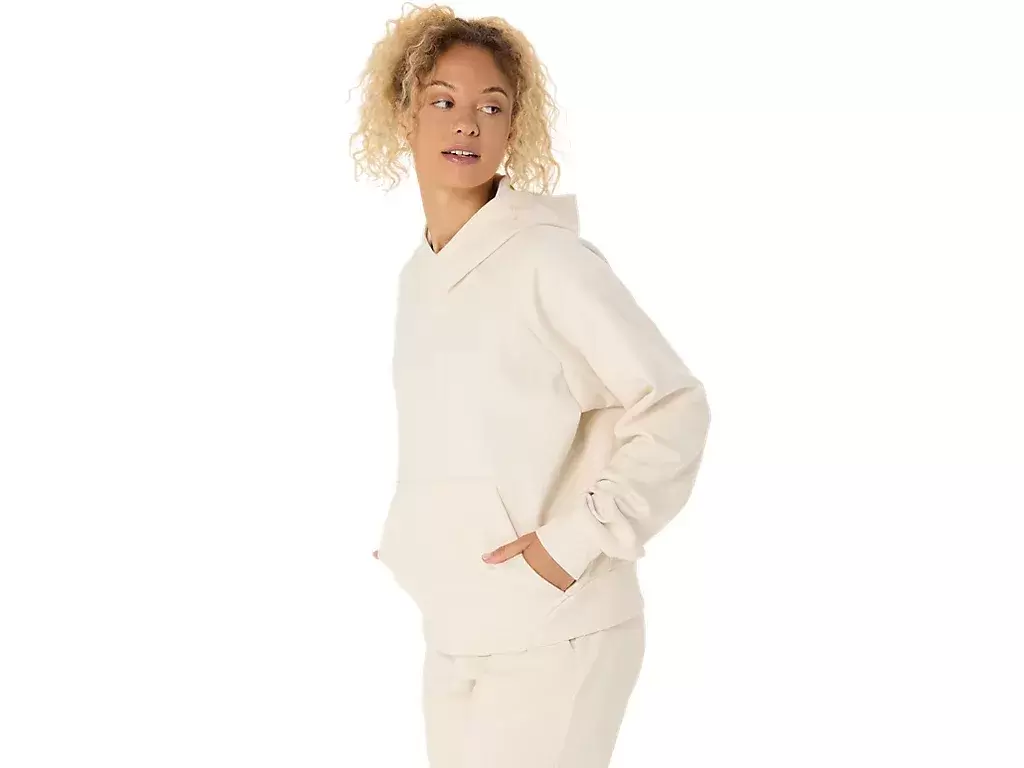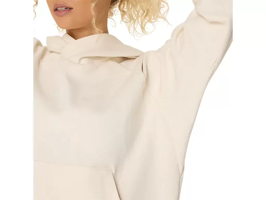 Este pulôver tem um caimento relaxado, um bolso canguru central para guardar itens essenciais e um capuz.