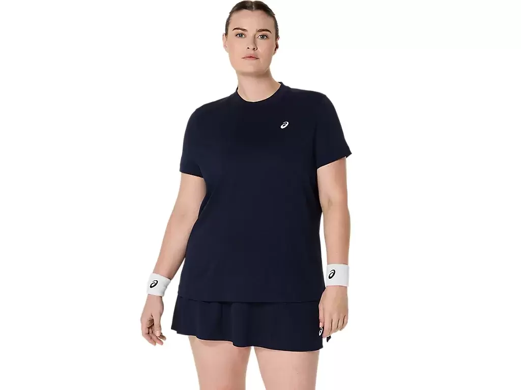 A CAMISETA DE MANGA CURTA COURT apresenta um design clássico e atemporal, perfeito para diversas partidas e treinos. Confeccionada com um material clássico de tênis, ela absorve a umidade com seu tecido macio e de secagem rápida, proporcionando conforto.