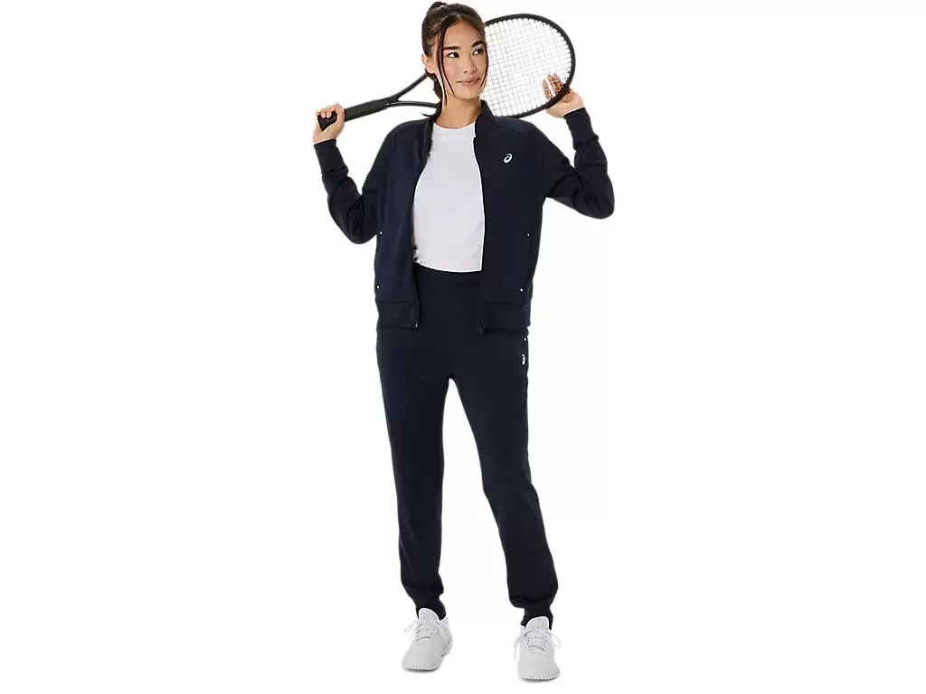 A jaqueta de aquecimento para quadra é uma peça confortável para aquecimento nas quadras de tênis.