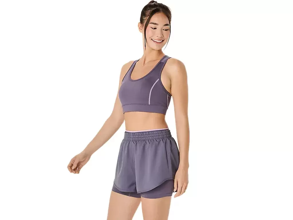 O sutiã possui costuras planas na frente e acabamento em V nas costas que ajudam a reduzir o atrito, enquanto o design nadador nas costas ajuda a melhorar a mobilidade para que você tenha menos distrações e se sinta confortável.