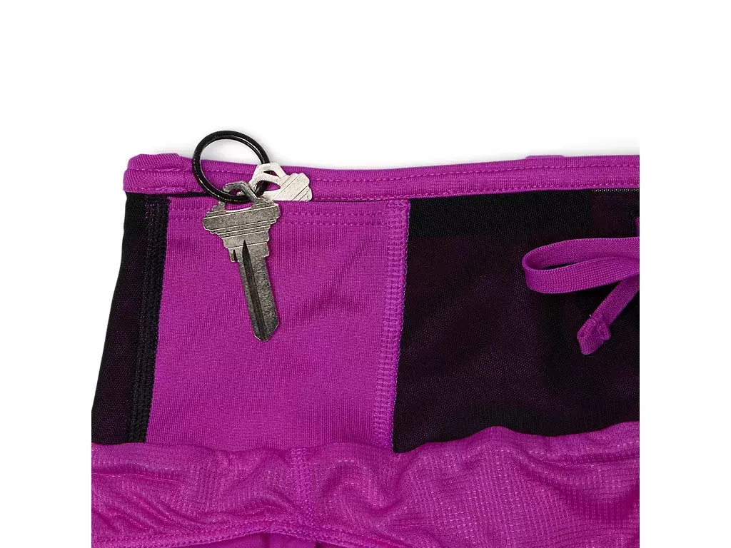 Este short possui vários bolsos, incluindo: um bolso traseiro central para guardar o celular e dois bolsos frontais menores.