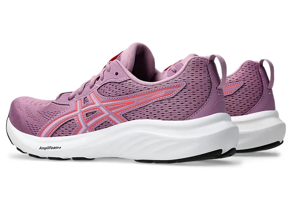 A entressola conta com a tecnologia GEL® e o amortecimento AMPLIFOAM+. Essas tecnologias ajudam a aumentar a durabilidade, ao mesmo tempo que proporcionam uma sensação mais macia sob os pés.