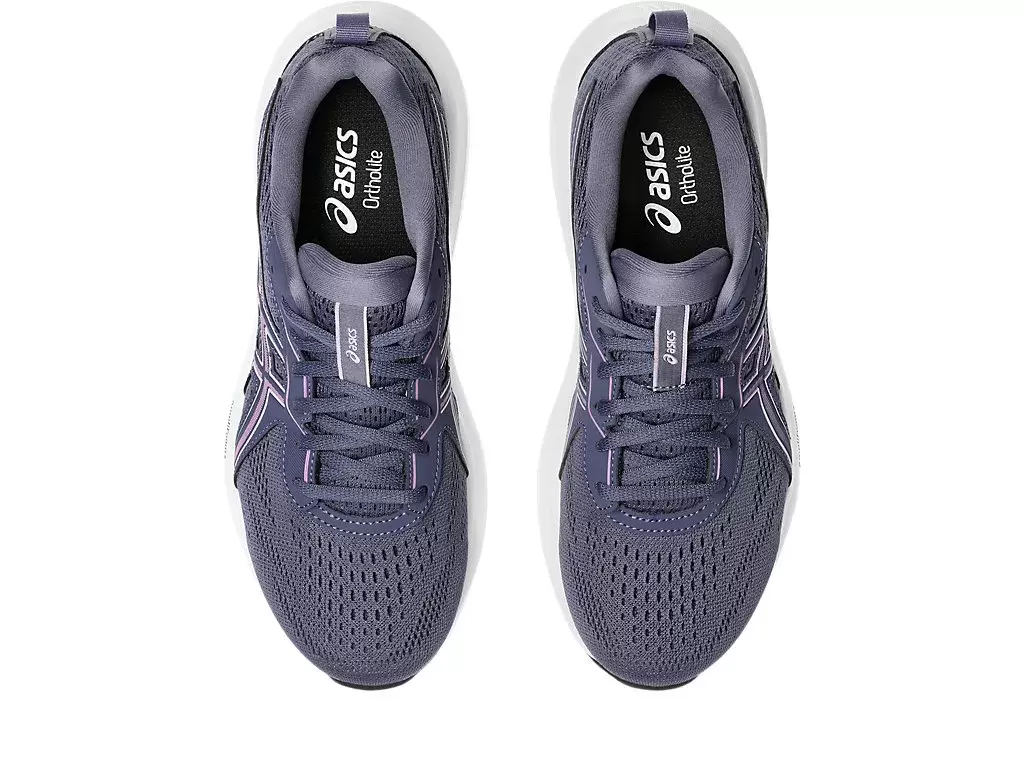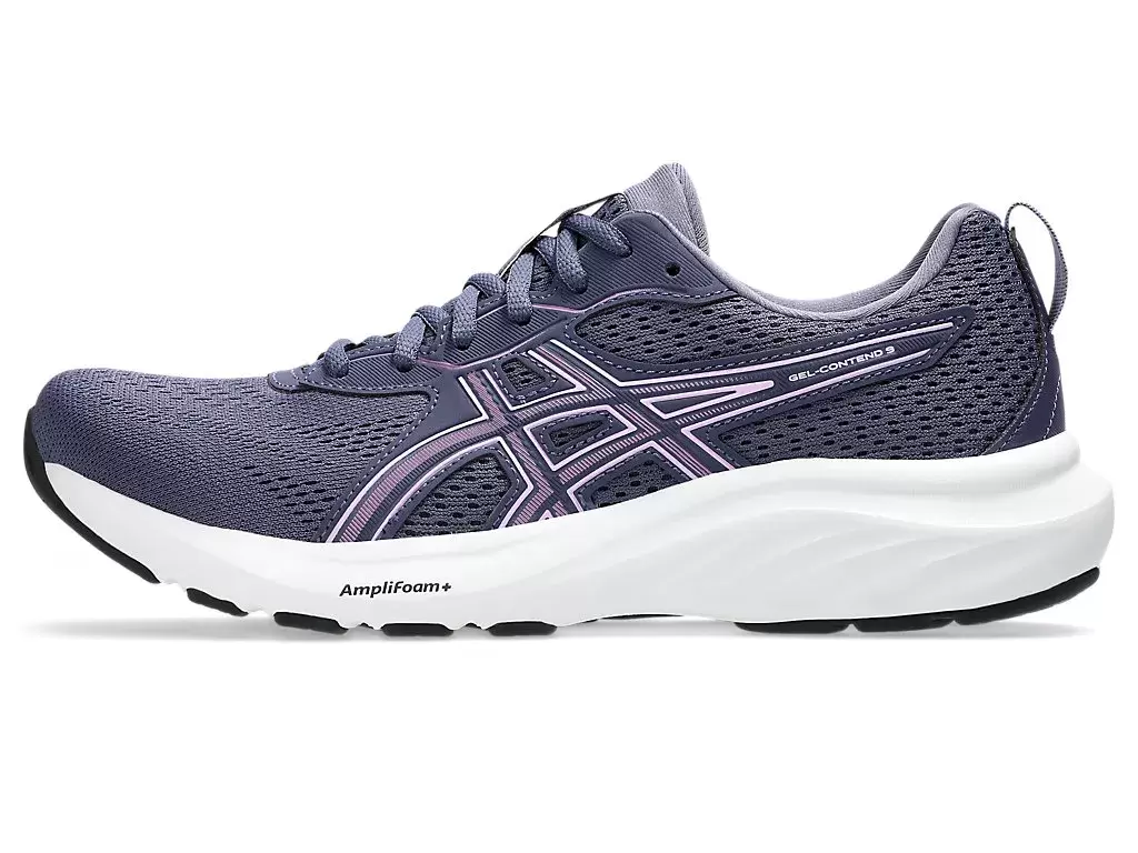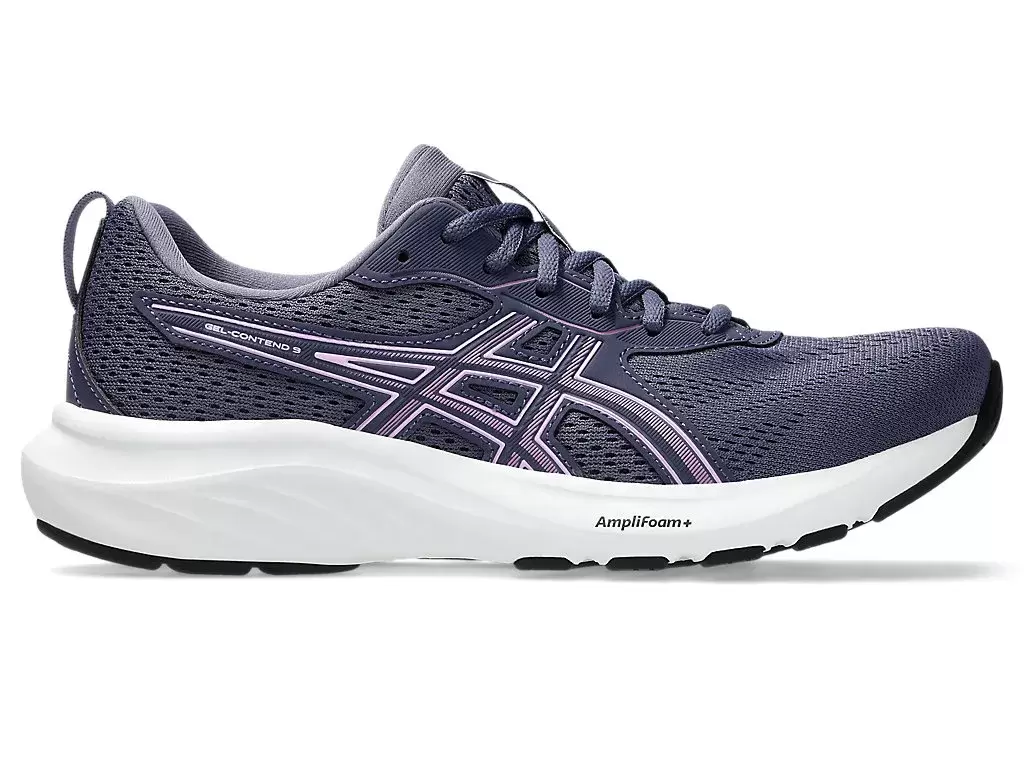 O tênis de corrida GEL-CONTEND® 9 (Largo) oferece bom amortecimento, suporte e durabilidade.