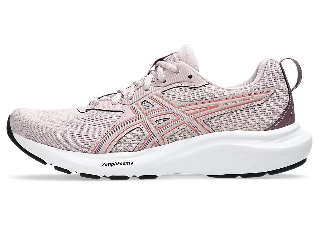 O tênis de corrida GEL-CONTEND® 9 (Largo) oferece bom amortecimento, suporte e durabilidade.