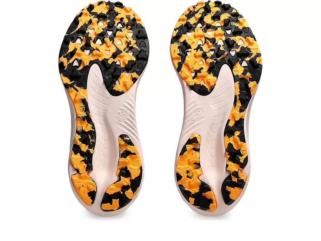 Enquanto isso, o padrão de tração com saliências da sola aumenta a aderência em superfícies fora de estrada.