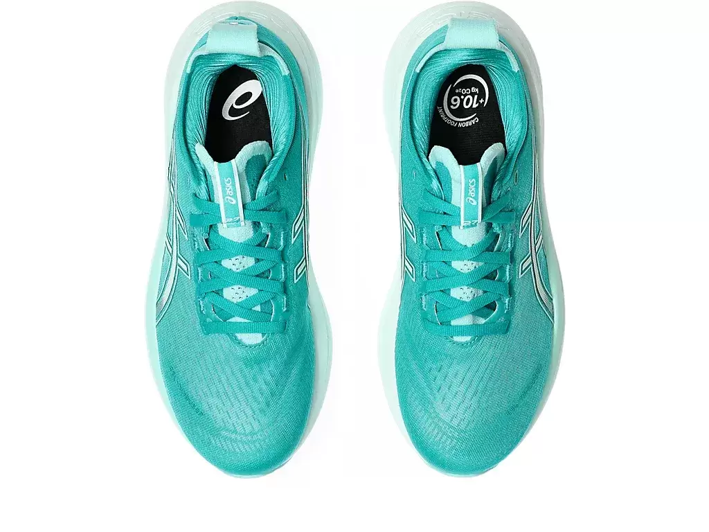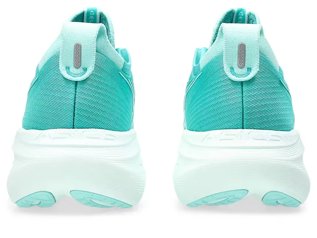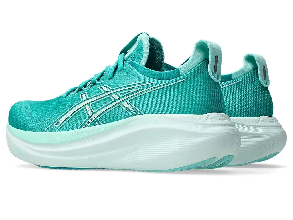 O amortecimento macio do tênis GEL-NIMBUS® 27 proporciona a sensação de estar pisando em nuvens. Este design foi reformulado para criar uma experiência de corrida mais suave e confortável.