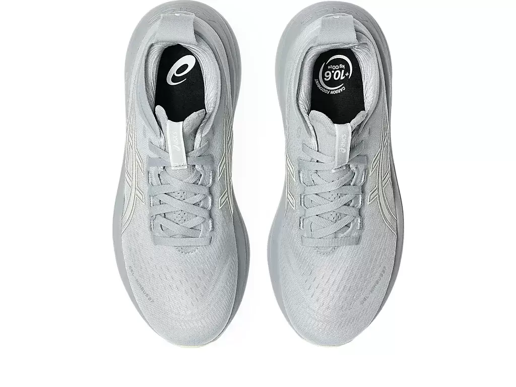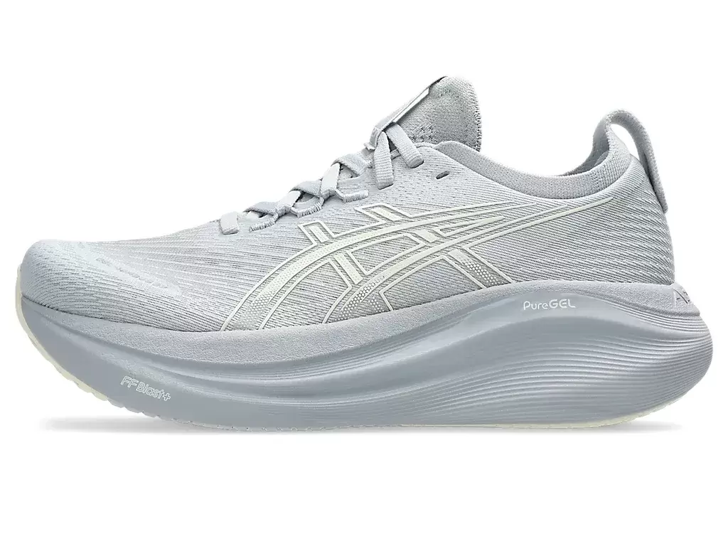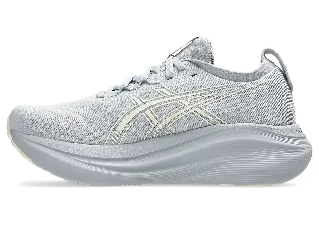 O amortecimento macio do tênis GEL-NIMBUS® 27 proporciona a sensação de estar pisando em nuvens. Este design foi reformulado para criar uma experiência de corrida mais suave e confortável.
