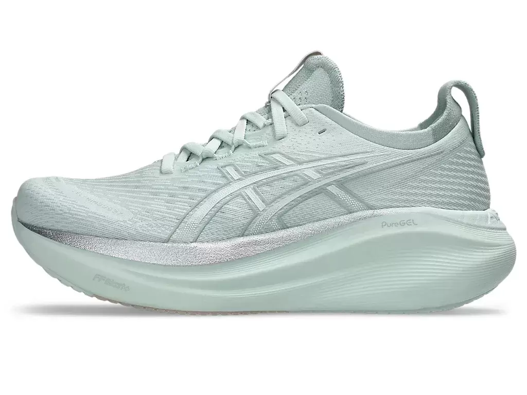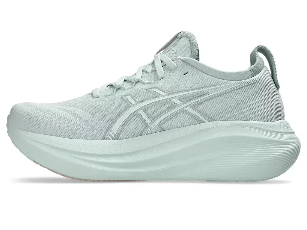 O amortecimento macio do tênis GEL-NIMBUS® 27 proporciona a sensação de estar pisando em nuvens. Este design foi reformulado para criar uma experiência de corrida mais suave e confortável.