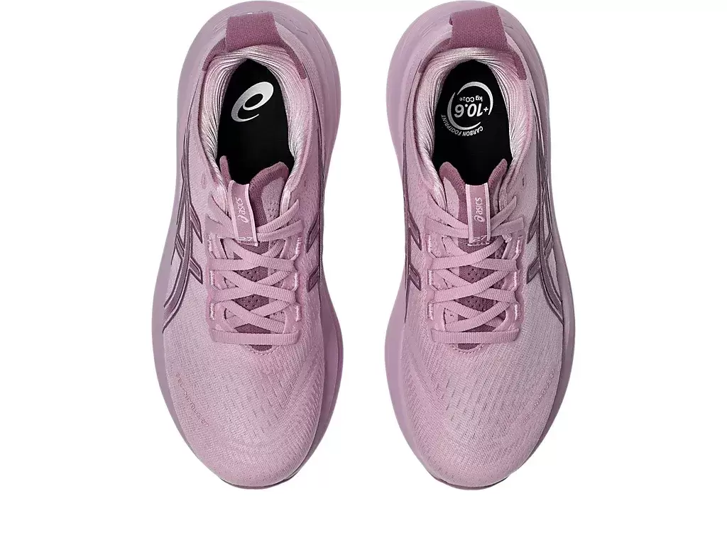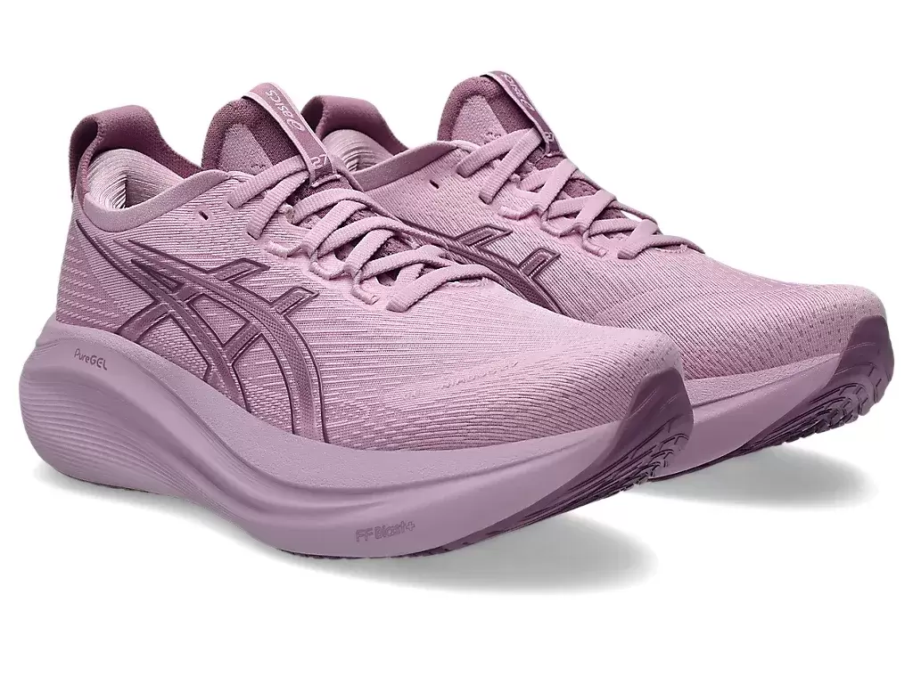 O amortecimento macio do tênis GEL-NIMBUS® 27 proporciona a sensação de estar pisando em nuvens. Este design foi reformulado para criar uma experiência de corrida mais suave e confortável.