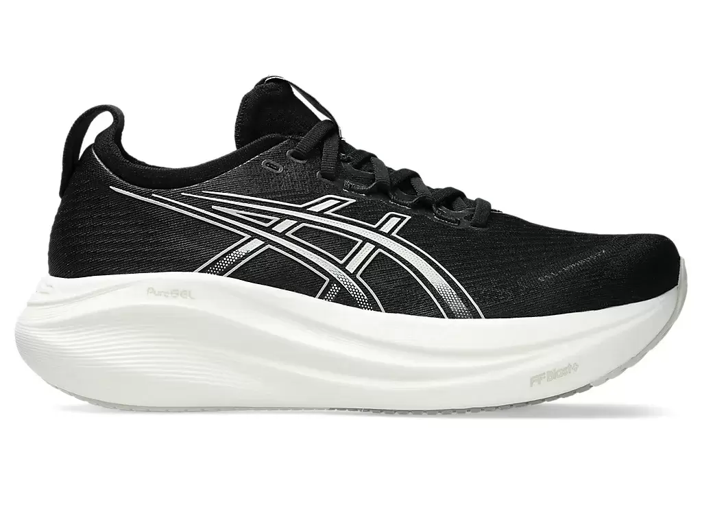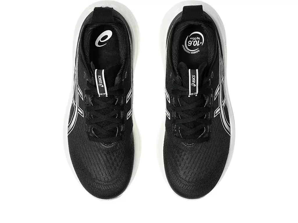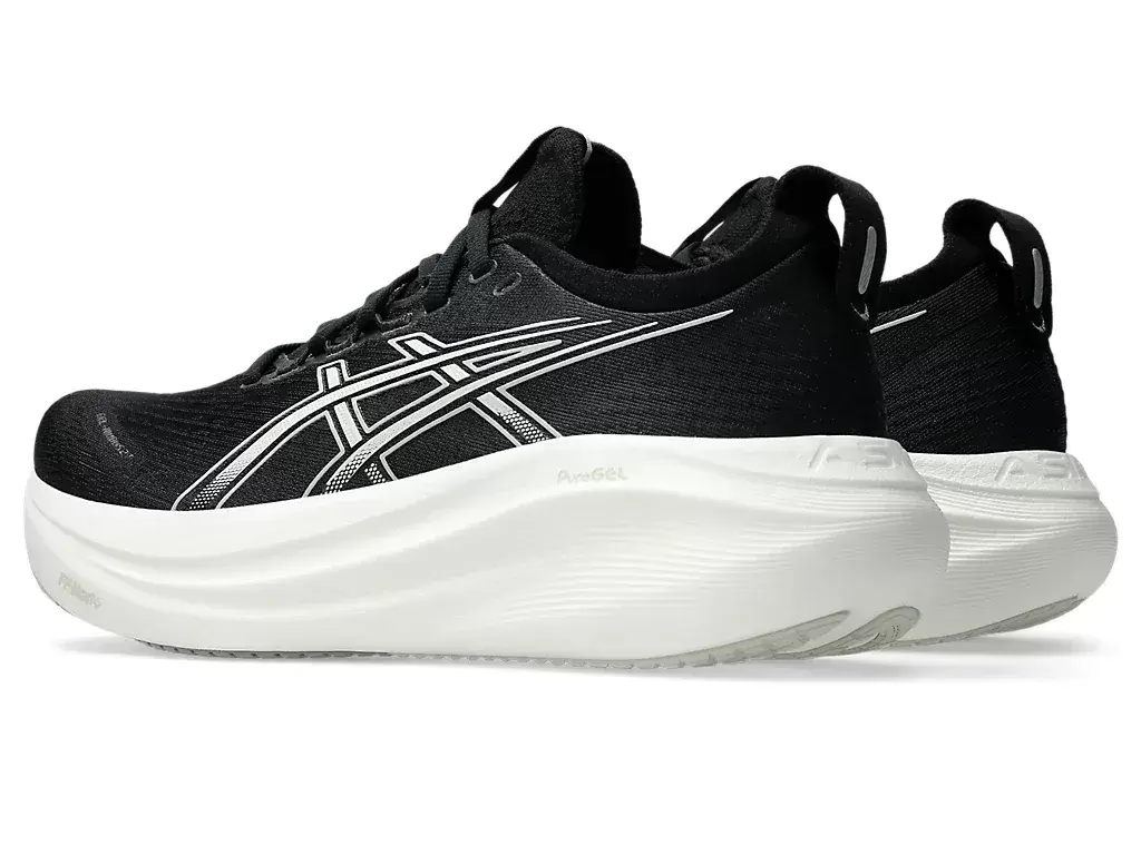 O amortecimento macio do tênis GEL-NIMBUS® 27 proporciona a sensação de estar pisando em nuvens. Este design foi reformulado para criar uma experiência de corrida mais suave e confortável.