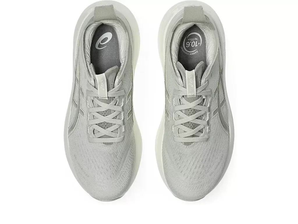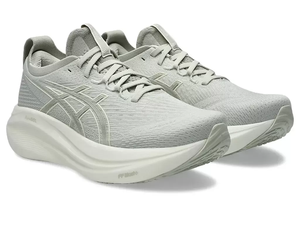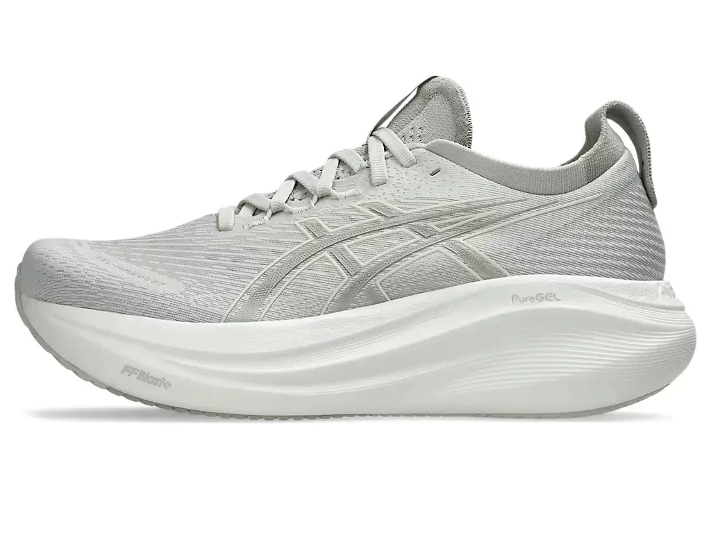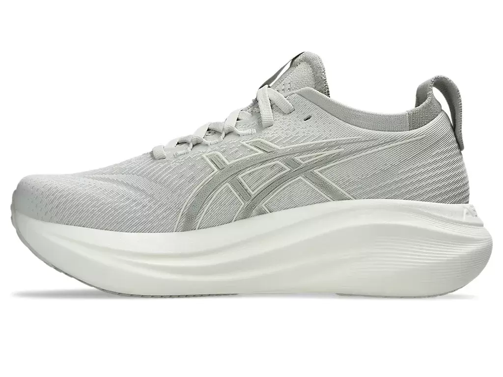 O amortecimento macio do tênis GEL-NIMBUS® 27 proporciona a sensação de estar pisando em nuvens. Este design foi reformulado para criar uma experiência de corrida mais suave e confortável.