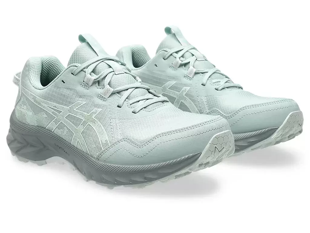 Enquanto isso, o solado apresenta um padrão de tração avançado, funcional tanto para asfalto quanto para trilhas.