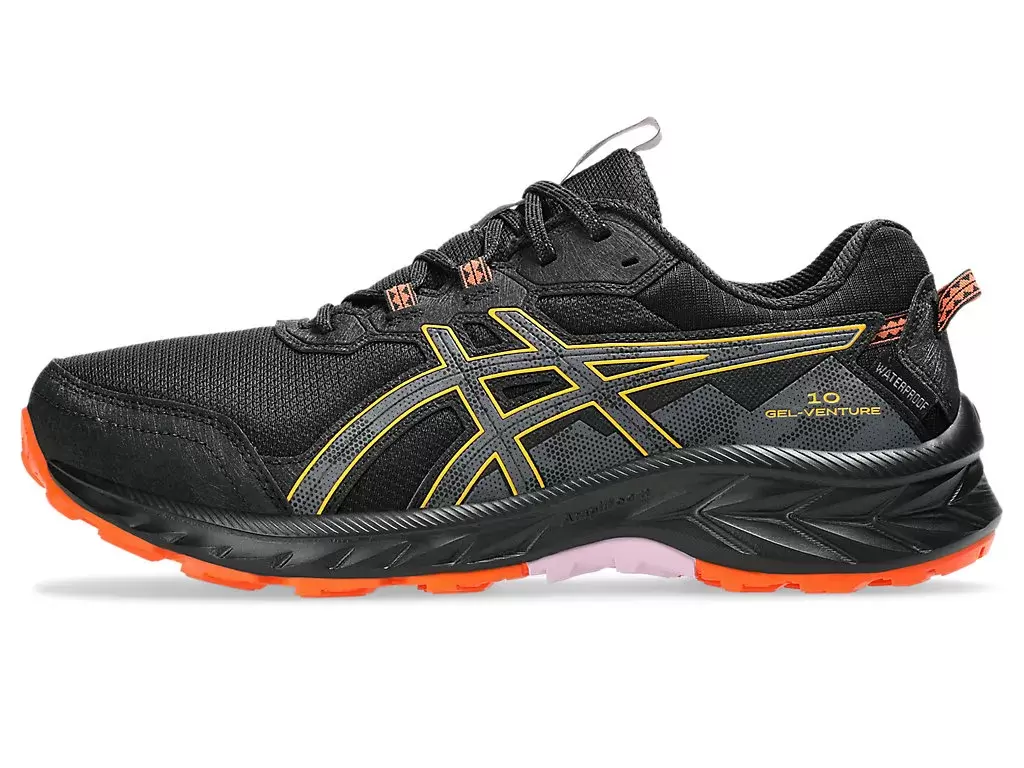 O calçado impermeável GEL-VENTURE® 10 foi projetado para ajudar a proporcionar bom amortecimento e conforto em condições úmidas. Esta versão apresenta um cabedal impermeável que ajuda a manter a água fora do interior do calçado.