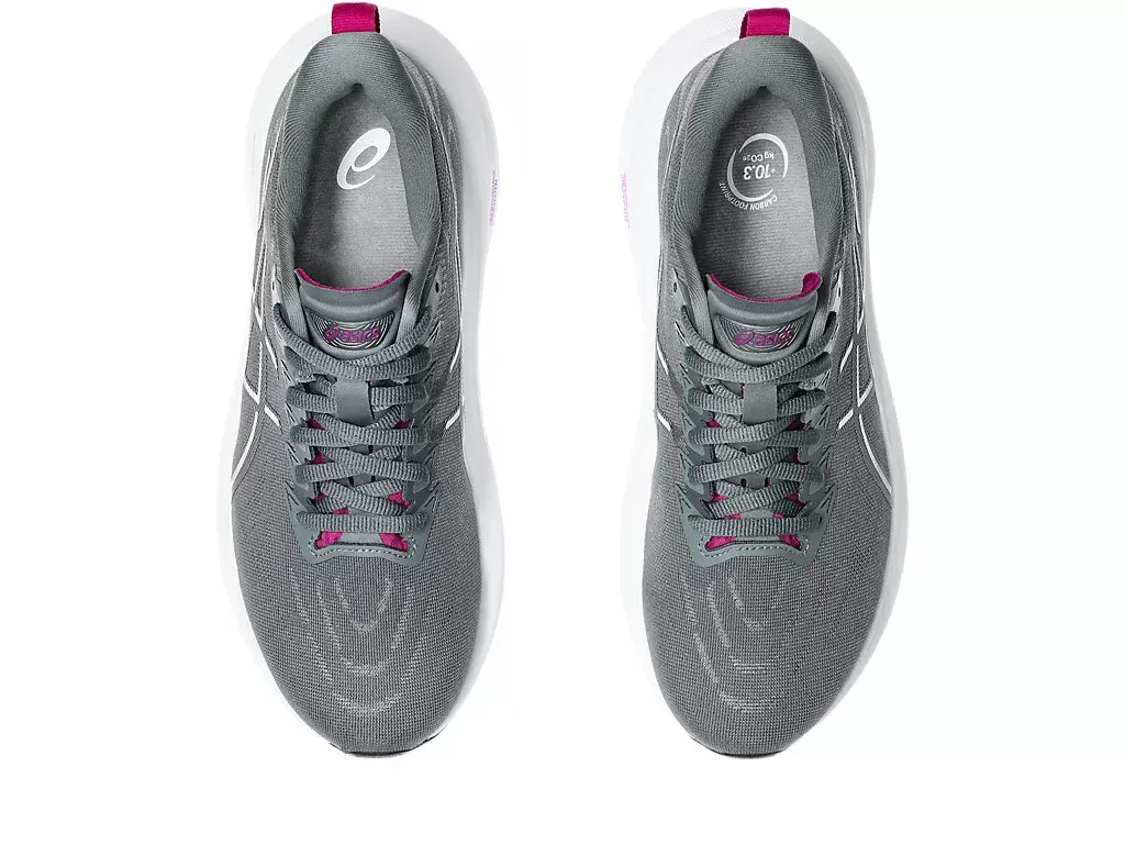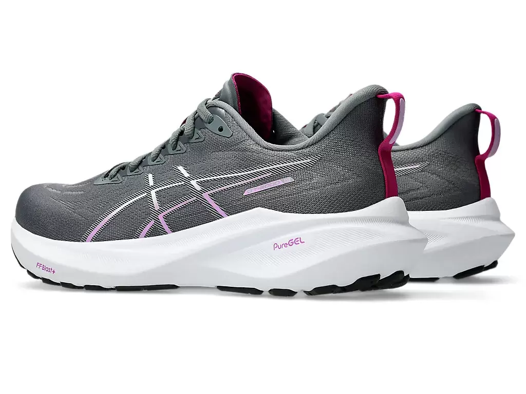 A entressola implementa uma unidade de amortecimento FF BLAST™ PLUS de comprimento total e a tecnologia PureGEL™. Esses recursos ajudam a proporcionar uma impulsão mais energizada com maciez semelhante a uma nuvem sob os pés.