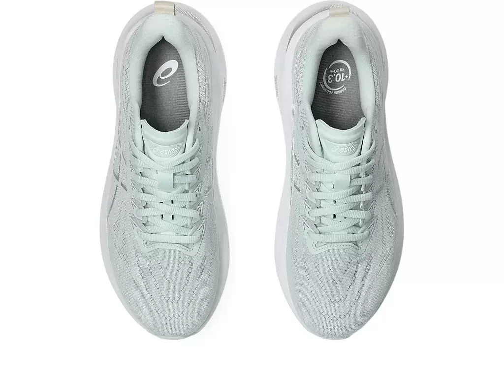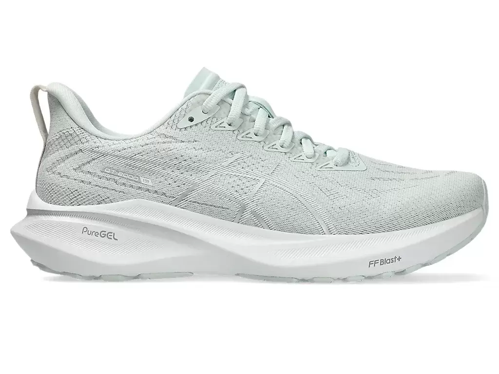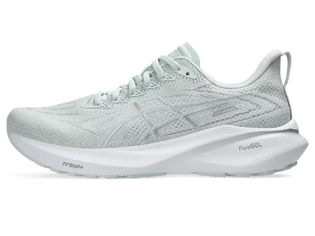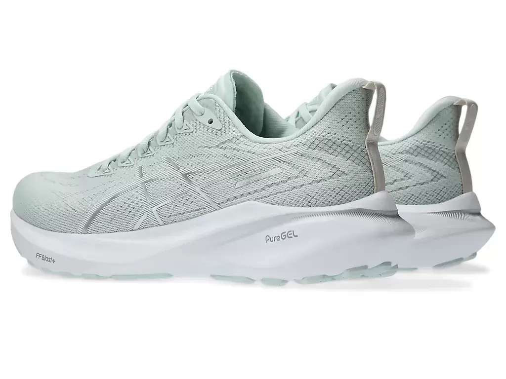 A entressola implementa uma unidade de amortecimento FF BLAST™ PLUS de comprimento total e a tecnologia PureGEL™. Esses recursos ajudam a proporcionar uma impulsão mais energizada com maciez semelhante a uma nuvem sob os pés.