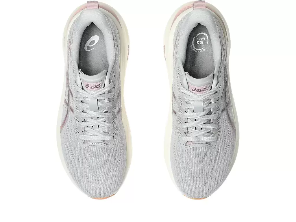 A entressola implementa uma unidade de amortecimento FF BLAST™ PLUS de comprimento total e a tecnologia PureGEL™. Esses recursos ajudam a proporcionar uma impulsão mais energizada com maciez semelhante a uma nuvem sob os pés.