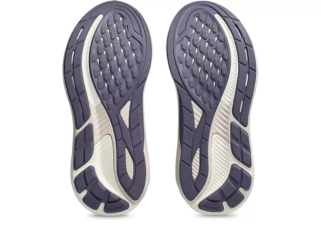 A entressola possui a unidade de amortecimento FF BLAST™ e a tecnologia PureGEL™. Esses recursos ajudam a proporcionar uma impulsão mais energizada com uma maciez incomparável sob os pés.