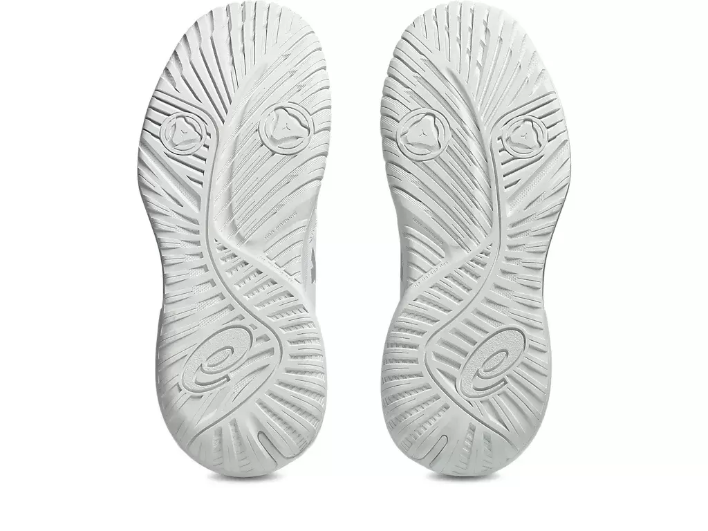 Borracha de alta resistência à abrasão da ASICS, localizada na área do calcanhar, que é aproximadamente três vezes mais durável do que a sola padrão. Borrachas.