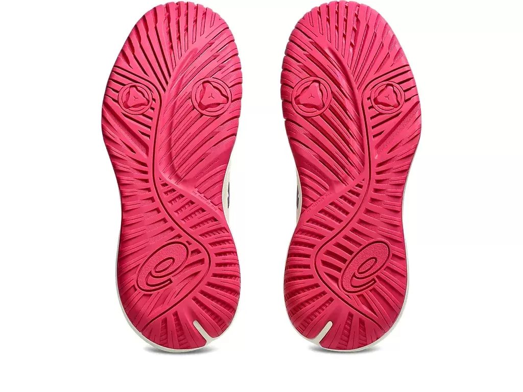 Borracha de alta resistência à abrasão da ASICS, localizada na área do calcanhar, que é aproximadamente três vezes mais durável do que a sola padrão. Borrachas.